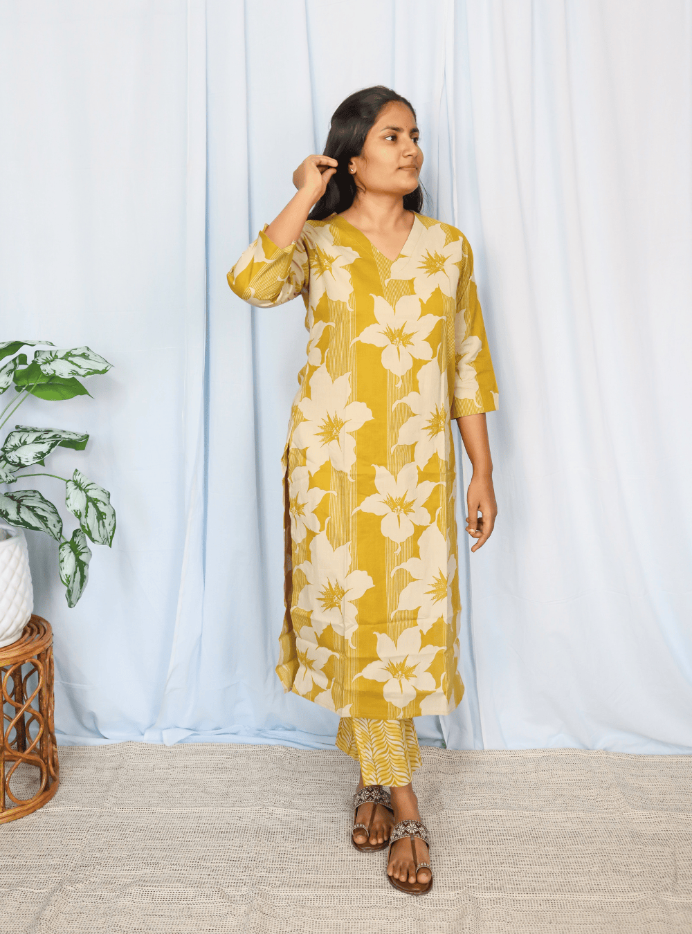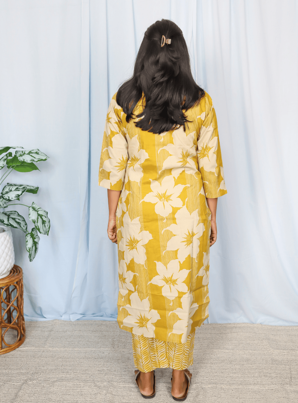 Yellow Floral Print Cotton Kurta Set